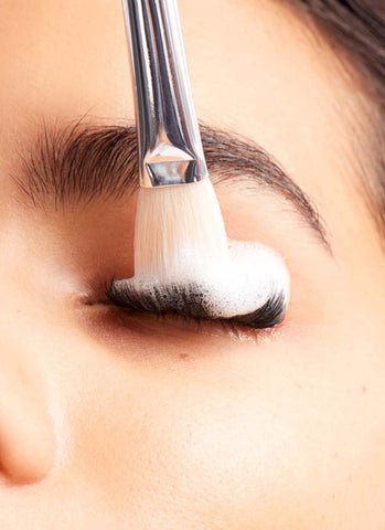 Using a gentle cleansing brush, lather your cleanser and swipe it over lids and eyelashes at the start of the appointment. Our Cloud Cleanse is formulated with Tea Tree water for its natural antibacterial properties, ensuring a thorough cleanse without using harsh chemicals on the delicate skin around the eyes.