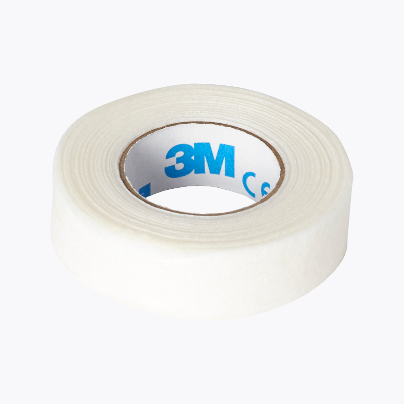 A non-woven, adhesive roll tape for taping down lower lashes and lifting upper lid.