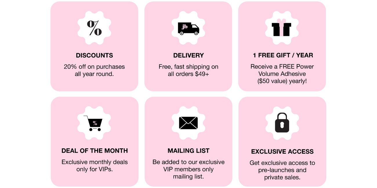 Becoming a VIP Member means unlocking exclusive perks designed just for lash pros who love to save and stay ahead! For just $99 a year, you’ll get 20% off every order—forever (yes, really!). You’ll also get early access to product pre-launches, private sales, exclusive email perks, and a FREE gift with your first order. It’s the ultimate way to save while treating yourself like the lash pro you are!